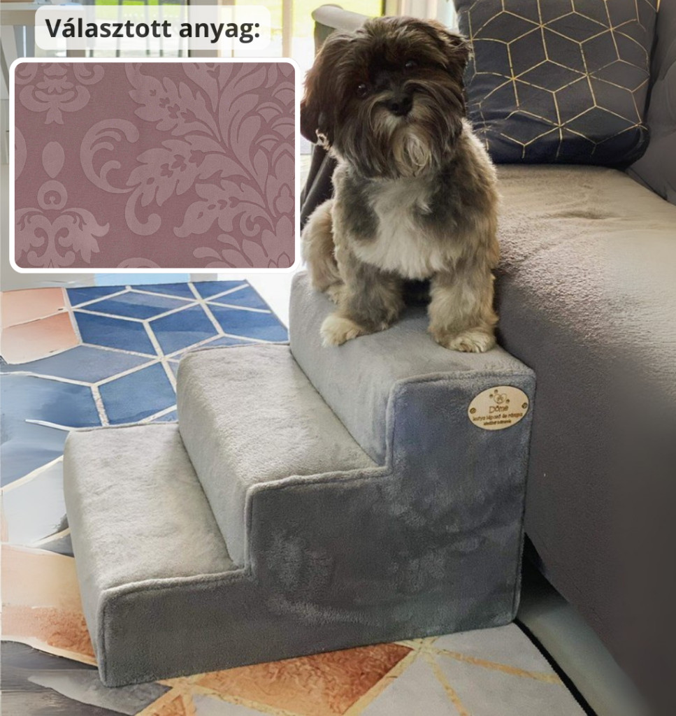 Bodza kutyalépcső 30 x 40 x 45 cm - 13-as rózsaszín damask bútorszövet