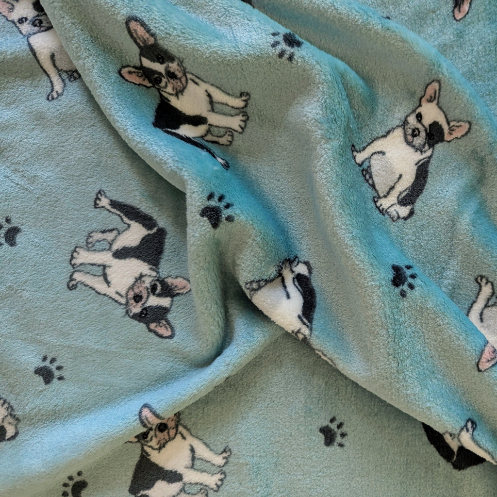 Bodza kutyalépcső 30 x 40 x 45 cm - zöldes alapon bulldogok