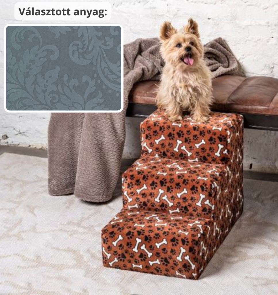 Daisy kutyalépcső 40 x 35 x 60 cm - 26-os kékes szürke damask bútorszövet