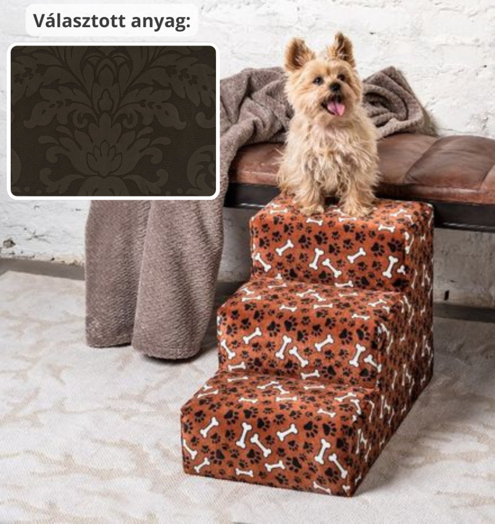Daisy kutyalépcső 40 x 35 x 60 cm - 84-es sötétbarna damask bútorszövet