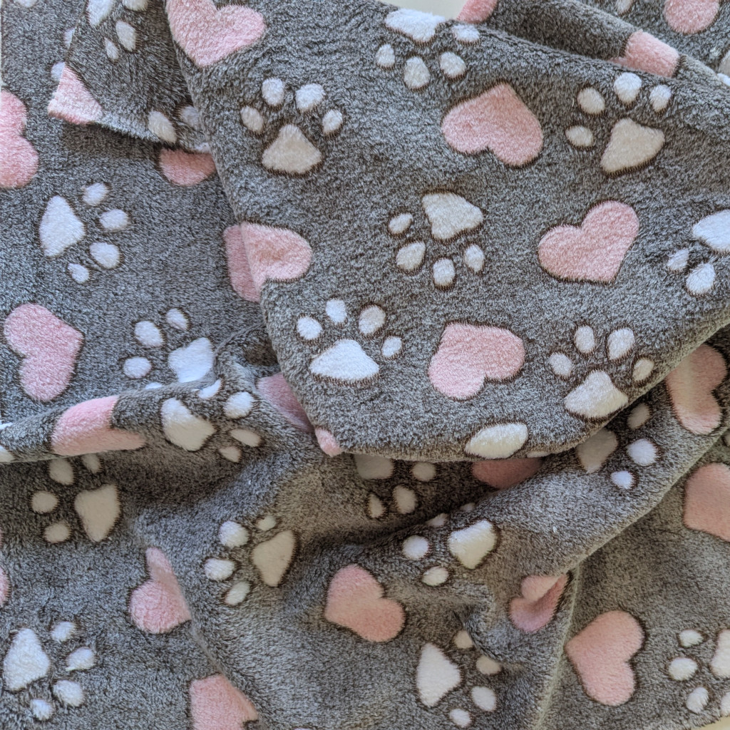Daisy kutyalépcső 40 x 35 x 60cm - szürke alapon rózsaszín szívecskék és fehér kis tappancsok