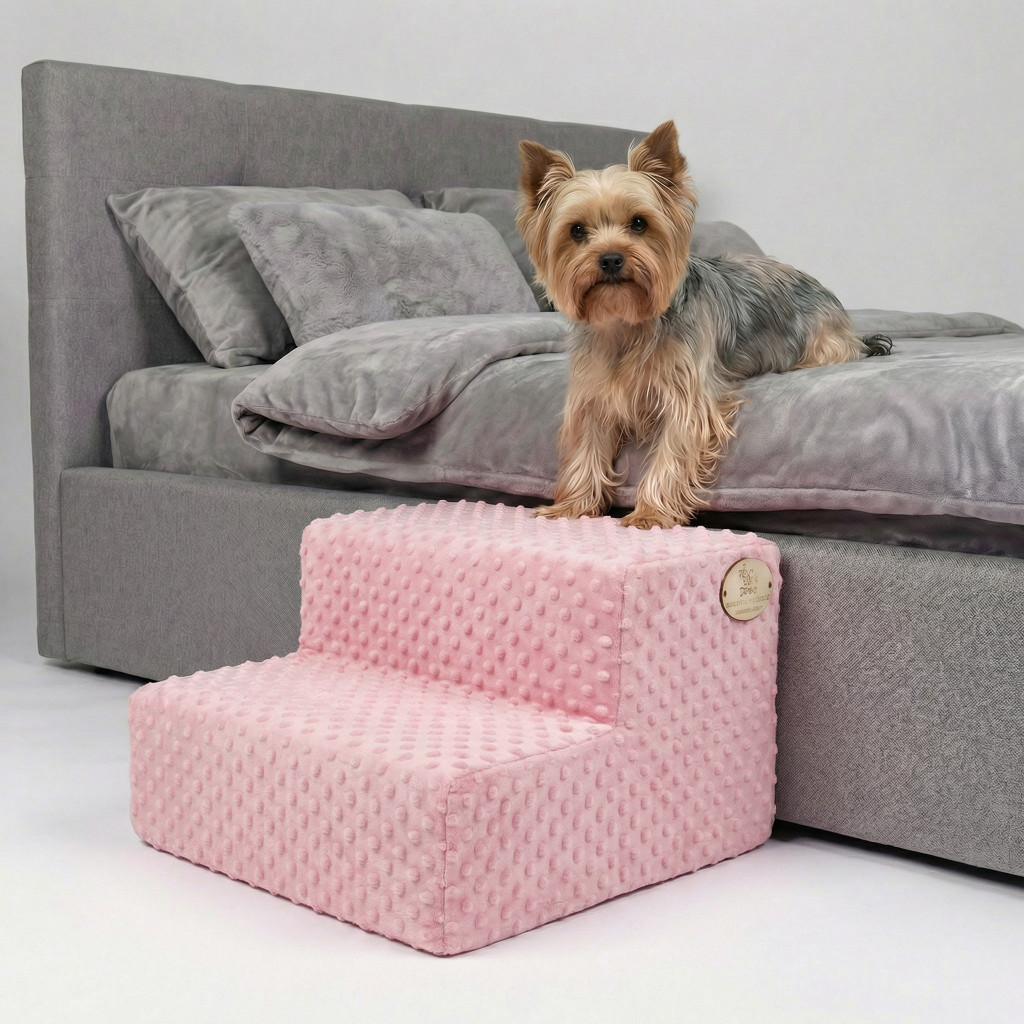 Mexi kutyalépcső 25 x 40 x 40cm - rózsaszín minky