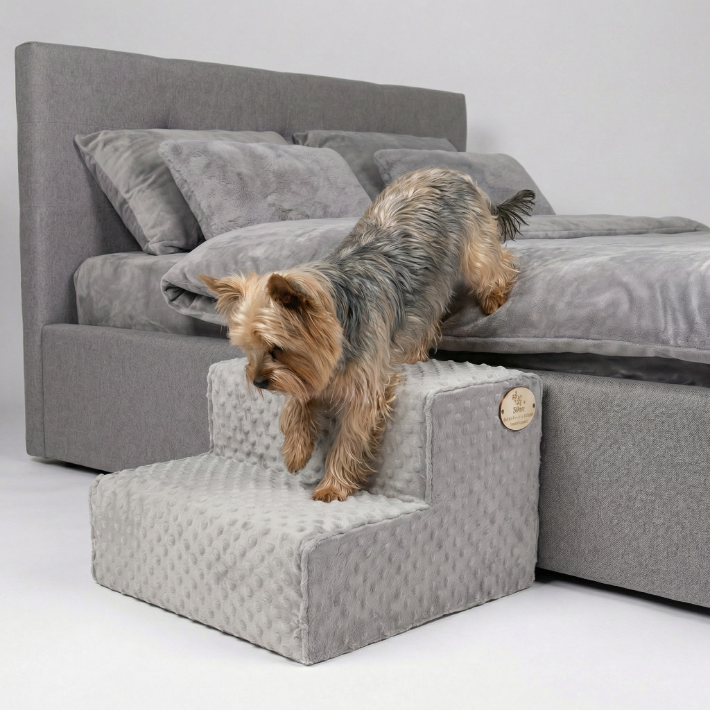 Mexi kutyalépcső 25 x 40 x 40cm - szürke minky