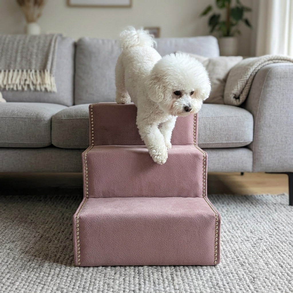 Segítsd kedvencedet, hogy ugrás nélkül, biztonságban feljuthasson az ágyra ezzel a 3 fokos kutyalépcsővel – mert az egészsége a legfontosabb.