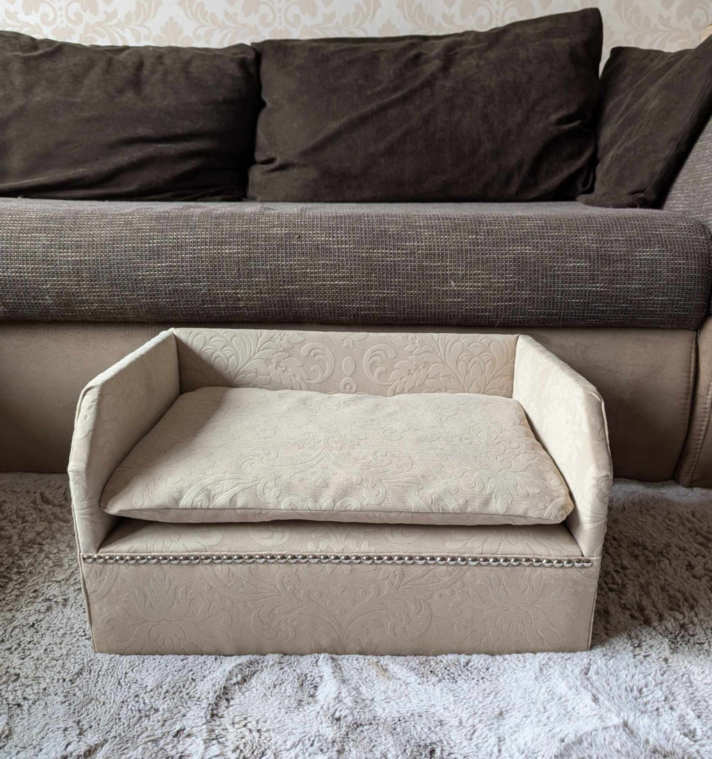 Sophie kutyaágy párnával - 44-es világosbarna damask bútorszövet