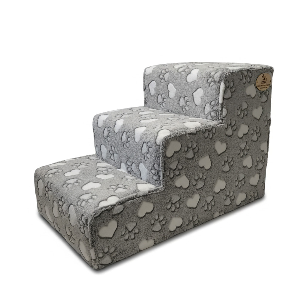 Daisy kutyalépcső 40 x 35 x 60cm - szürke alapon fehér szívek és tappancsok