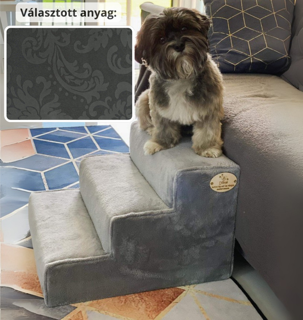 Bodza kutyalépcső 30 x 40 x 45 cm - 36-os antracit szürke damask bútorszövet